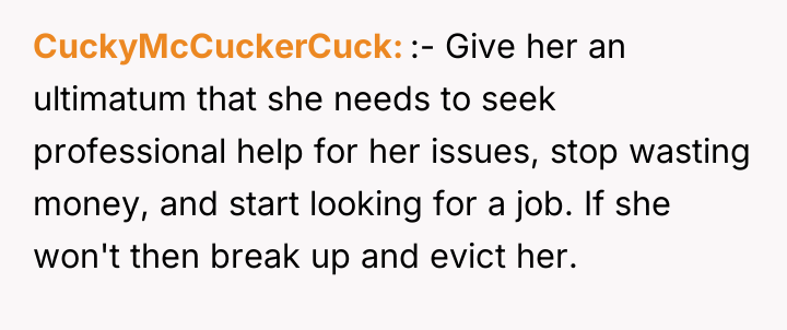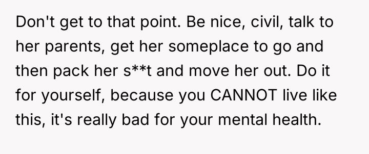 Given the OP's exhaustion and the girlfriend's lack of financial means, how can the OP establish firm boundaries and enforce necessary changes in their living situation without causing the girlfriend immediate financial ruin or homelessness?
