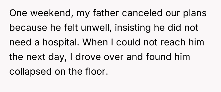 But joy turned to despair when her father fell ill, and she found him alone and vulnerable, a stark reminder of the loneliness that had crept into their lives. While she stood vigil by his hospital bedside, her siblings and mother arrived only to visit him, leaving her to endure the silent hall, a witness to the growing chasm that no words could mend.
