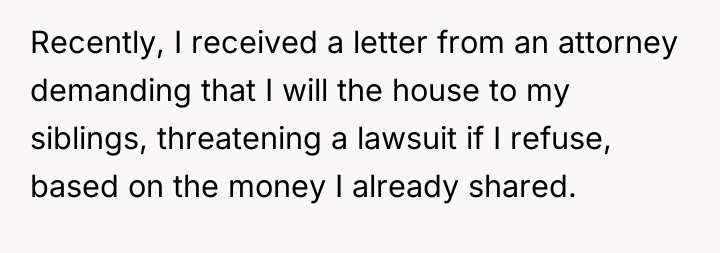 Given the documented legal beneficiary status for the house and the bank account, is the threat of a lawsuit by the siblings to force the transfer of the home a credible legal risk, or is it merely an attempt at financial coercion based on perceived familial obligation rather than legal right?