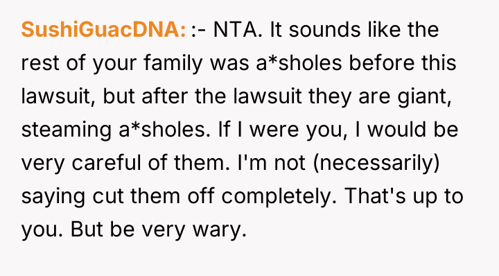 The daughter's actions in securing her father's welfare (reporting abuse, hiring an attorney) were ethically appropriate and demonstrated commendable advocacy. Moving forward, she should cease all discussion regarding the inheritance with her family and rely solely on her attorney to manage the current demand letter. Her constructive recommendation should be to maintain firm legal boundaries: all communication regarding the estate must go through legal counsel, and no further voluntary financial concessions should be made, as doing so validates their coercive tactics.
