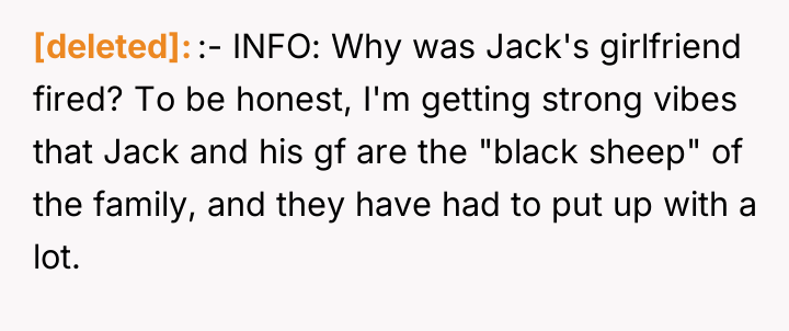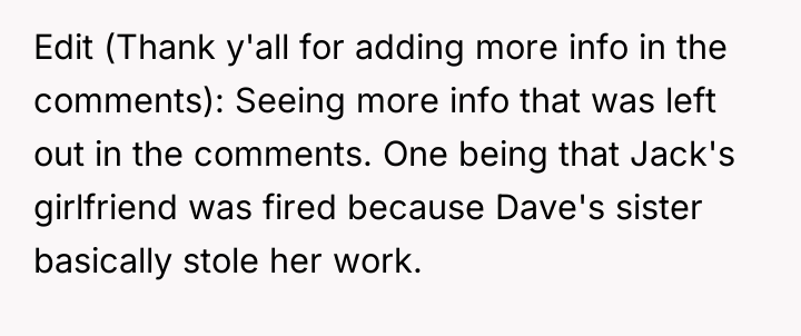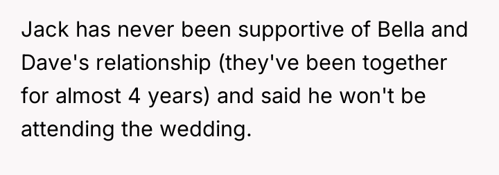 As noted by Dr. Harriet Lerner, a psychologist specializing in family dynamics, 'Unresolved childhood loyalties and sibling history often complicate how we navigate adult relationships and life transitions.' This situation clearly demonstrates how past grievances, specifically Jack's perceived slight against his former girlfriend involving Dave's family years ago, are being inappropriately projected onto a current, separate event—Bella's wedding.