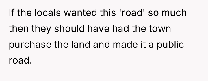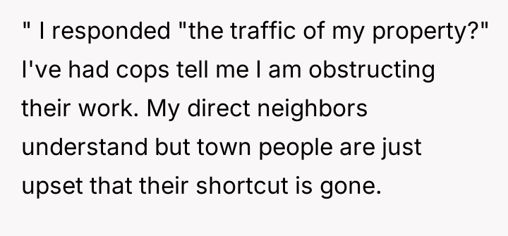 What used to be a convenient route for locals has now been closed off, causing frustration among those who relied on it to save time. As drivers adjust to the longer way around, a subtle conflict begins to grow—where the rights of a new homeowner meet the habits of a community used to cutting through. The situation captures the tension between change and tradition, and the challenges of blending personal boundaries with neighborhood expectations.