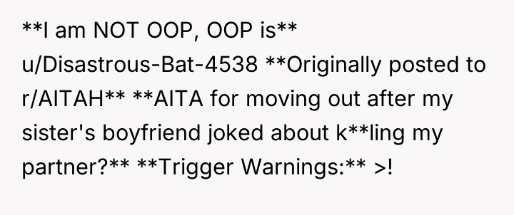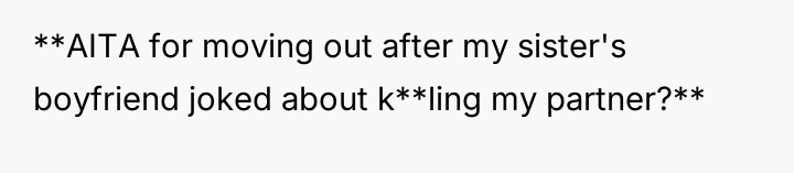 AITA for moving out after my sister’s boyfriend joked about k**ling my partner?