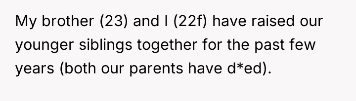 In the quiet resilience of two siblings thrust into the role of guardians, they have navigated the challenges of loss and responsibility with strength and unity. Their younger siblings look to them not just for care, but for stability in a world that has shifted beneath their feet. Despite the misunderstandings and assumptions from others, these young adults have forged a family bound by love, not convention.