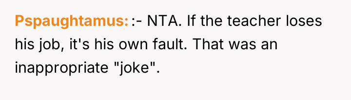 AITA for potentially getting a teacher fired over a joke?