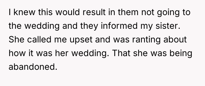 AITA for telling my sister she is an i**ot if she thought her actions at her wedding wouldn’t have consequences.