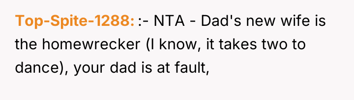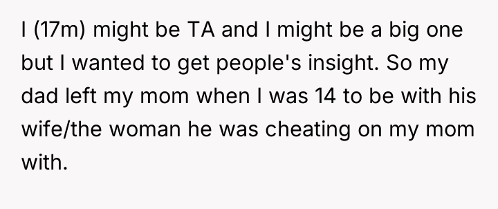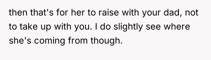 After reading through the Reddit comments, it's clear that many readers empathized deeply with the original poster's position. The majority understood the complex emotions involved in navigating a fractured family dynamic, especially when trust has been broken by a parent’s infidelity. Many commended the OP for prioritizing their mother’s well-being and financial stability, recognizing that sometimes loyalty isn't just about maintaining a relationship but about standing up for fairness and support where it's due. The consensus seemed to lean toward the idea that while the OP might feel guilty or question their stance, their decision was rooted in a mature understanding of the situation and a desire to protect their family.