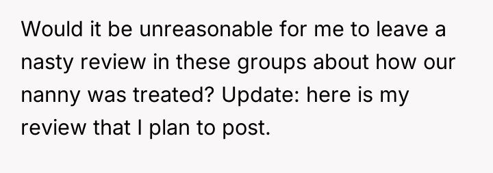 WIBTA if I left a nasty review for a place that didn’t treat our nanny well?