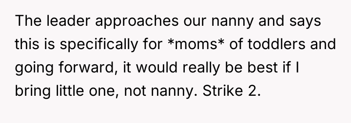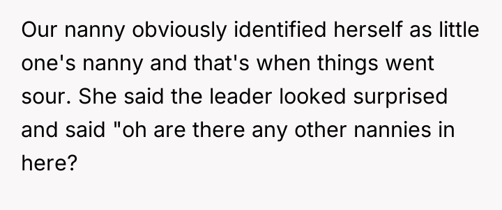 In a community meant to nurture connection and support among parents, a simple toddler group meeting turned into a moment of exclusion and discomfort. A mother, juggling work and childcare, trusted her nanny to represent their family, only to witness her being singled out and made to feel unwelcome in a space designed to bring people together.