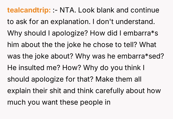 'AITA for embarrassing my FIL after I repeatedly asked him to explain his joke to me?'
