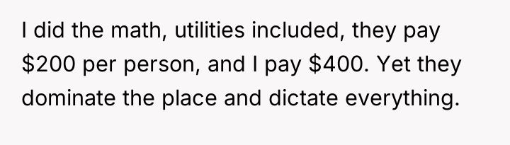 Roommate moved in his girlfriend and her kids without asking and now they are ruining my life
