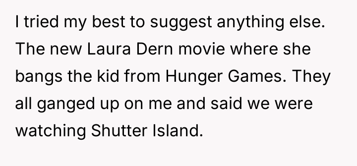 The aftermath of the 'Shutter Island' incident left the husband in a quandary, with his wife feeling misunderstood and accusing him of not appreciating her taste. She argued that her love for novels, with their intricate characters and expansive plots, proved her intellectual capacity. She felt he was deliberately choosing films that would make her look foolish, a notion he vehemently denied, stating that their time together was the real prize. This disagreement escalated, leading him to question his own actions: was he being a jerk for avoiding movies he knew would challenge her, or was he simply trying to ensure a pleasant evening for both of them?