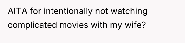 'AITA because I will not watch anything more complicated than a Hallmark movie with my wife.'