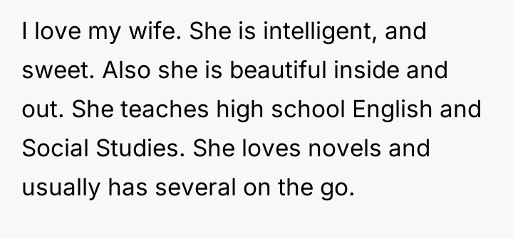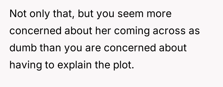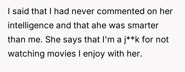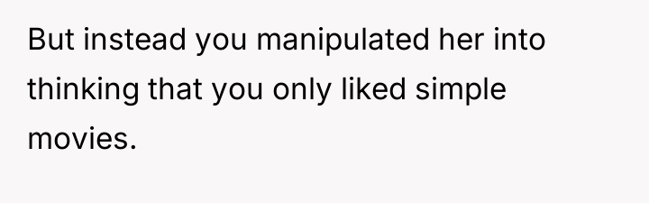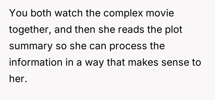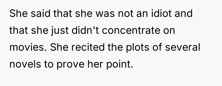 In a tale as old as time, a devoted husband found himself in a matrimonial maze, all thanks to his wife's peculiar movie preferences. While she may be a genius with a b**k in hand, the silver screen proves to be a different beast entirely. Our story follows a man who loves his wife dearly, appreciating her sharp intellect and kind heart, but his heart sinks a little when movie night rolls around. He's learned the hard way that complex plots and sudden twists are a recipe for confusion, leading to more questions than answers, and often, a rather embarra*sing evening for his beloved wife.