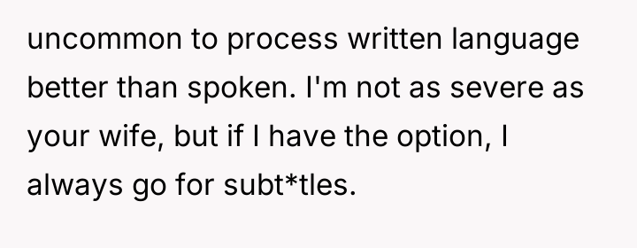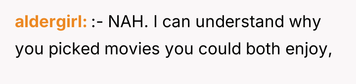 This couple's movie nights have become a source of both amus**ent and mild frustration. He knows exactly what kind of films will keep his wife engaged – predictable rom-coms set in quaint hometowns, featuring familiar tropes and oh-so-convenient reunions. Anything beyond that, and he braces himself for a barrage of questions that suggest she might have missed a few crucial plot points. It's a delicate dance, trying to balance his desire for a shared, enjoyable experience with his wife's unique way of processing cinematic narratives. The question is, can he navigate these choppy waters without rocking the marital boat?