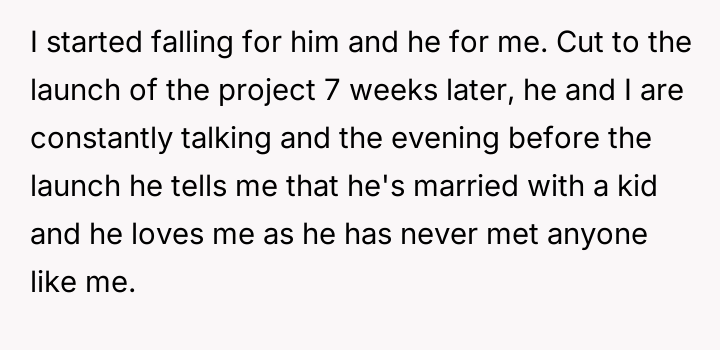 A new project manager thought she had found love in an unexpected place, right in the heart of her workplace. As she dove deep into a high-stakes project, her focus began to shift from deadlines to desires, finding an undeniable connection with a key figure involved. Their time together was intense, a whirlwind of shared tasks and stolen moments that quickly blossomed into something much more. Little did she know, this burgeoning romance was about to take a sharp and shocking turn.