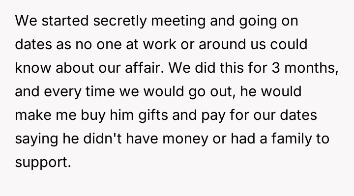 As their clandestine affair continued, a disturbing pattern began to emerge, casting a dark shadow over their passionate encounters. Despite the emotional intensity they shared, the financial burden of their secret dates fell squarely on her shoulders. He, the man who claimed to be so deeply in love, consistently used fabricated excuses of financial hardship to avoid paying, making her the sole provider for their secret rendezvous.