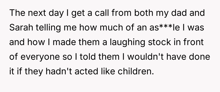 AITA for turning my Step-mom and my Dad laughing stock in front of the whole family?