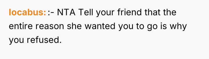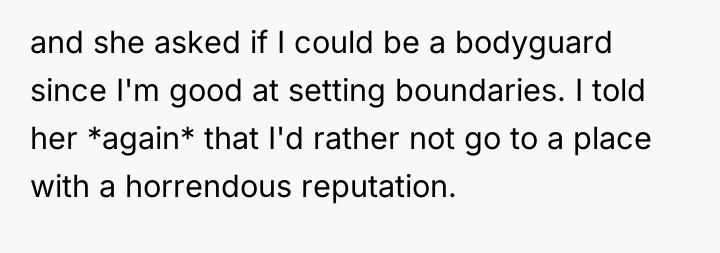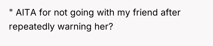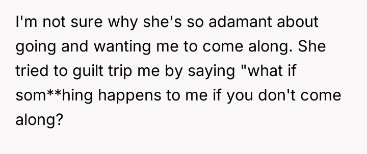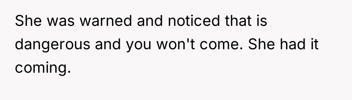 The decision to go alone, while ultimately not resulting in a catastrophic event, still speaks volumes about the friend's priorities and her willingness to disregard the safety concerns of those close to her.