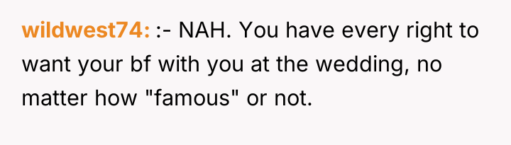 WIBTA if I brought my "famous" boyfriend to my sister's wedding?