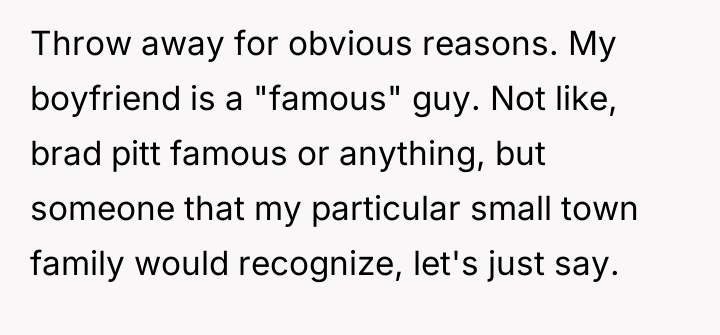 'WIBTA if I brought my "famous" boyfriend to my sister's wedding?'