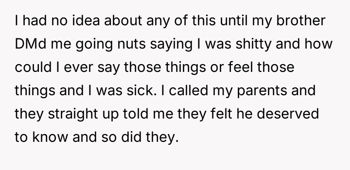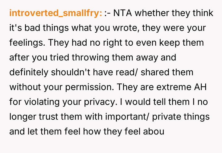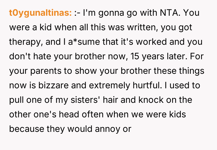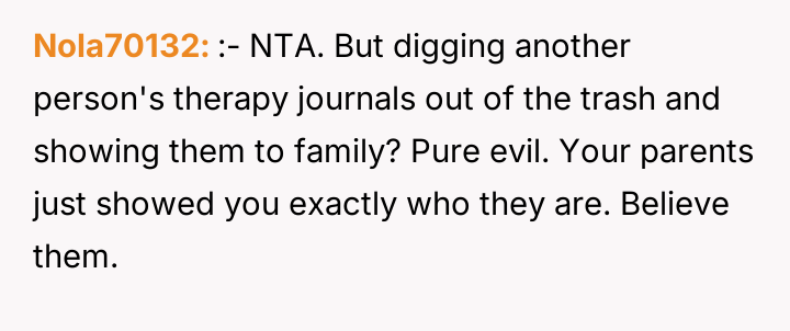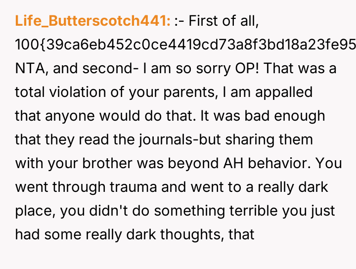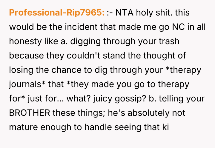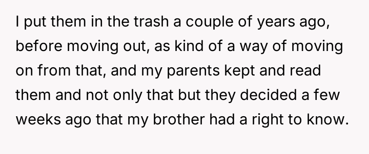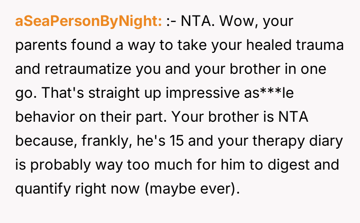 AITA for calling my parents AHs after they shared my former therapy diary with my younger brother?