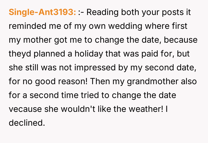 AITA for not moving my wedding date? *UPDATE*