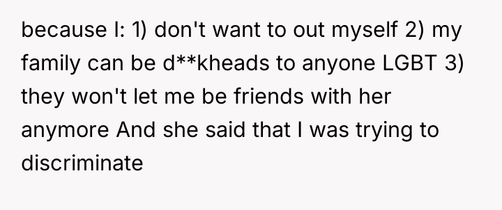 'My Friend Is Calling Me A B**ot Because I Asked Her Not To Out Me At Home'