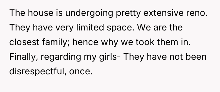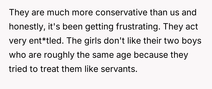 A family's peaceful home life takes an unexpected turn when unexpected guests arrive, bringing with them a tidal wave of cultural clashes and simmering tensions. What started as a simple act of hospitality quickly unravels into a dramatic saga of differing beliefs and ent*tlement, leaving one woman wondering if she'll ever get her quiet life back.