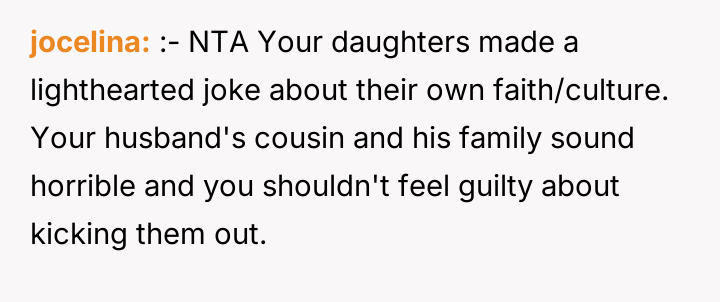 AITA for kicking relatives out with nowhere to go over a religious joke?