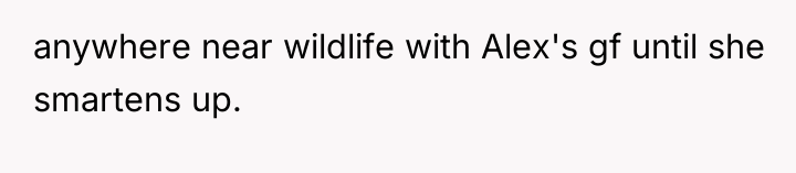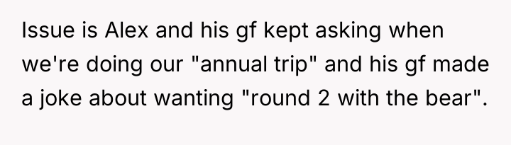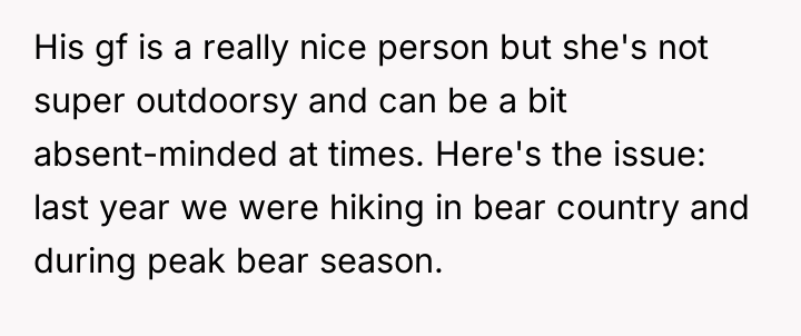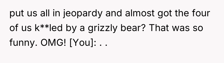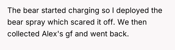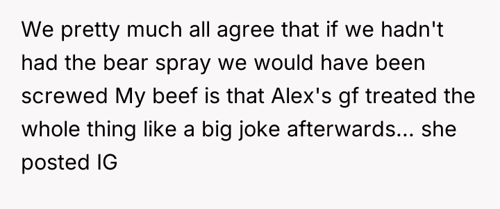 Friend's Girlfriend Laughed About Almost Getting Us K**led by a Bear So I Banned Her