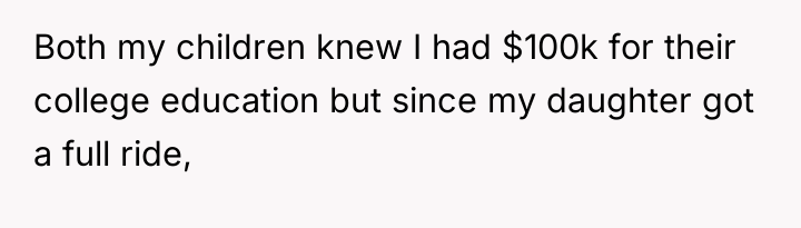 My Son Is Demanding I Split His Sister’s College Fund Even Though I Paid For His Education
