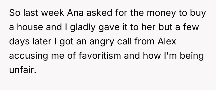 He believed his actions were logical and fair, a response to the unique circumstances each child faced. However, his words seemed to fall on deaf ears, doing little to quell Alex's anger.