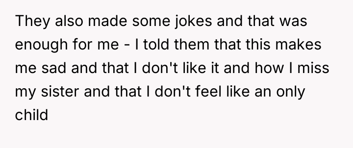 'AITA for not accepting jokes about being an only-child after losing my sister?'