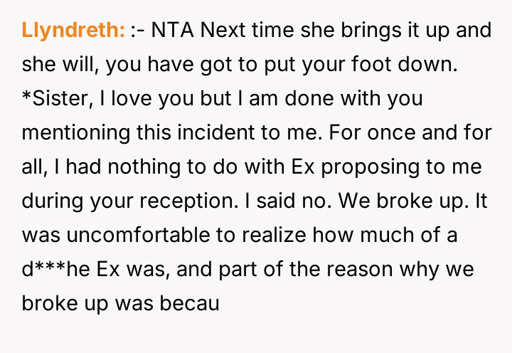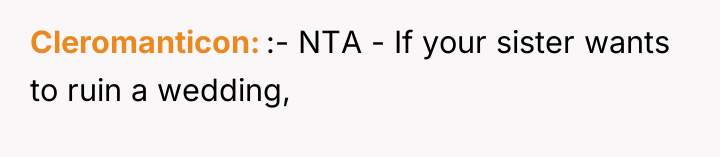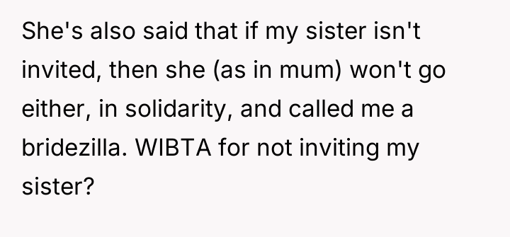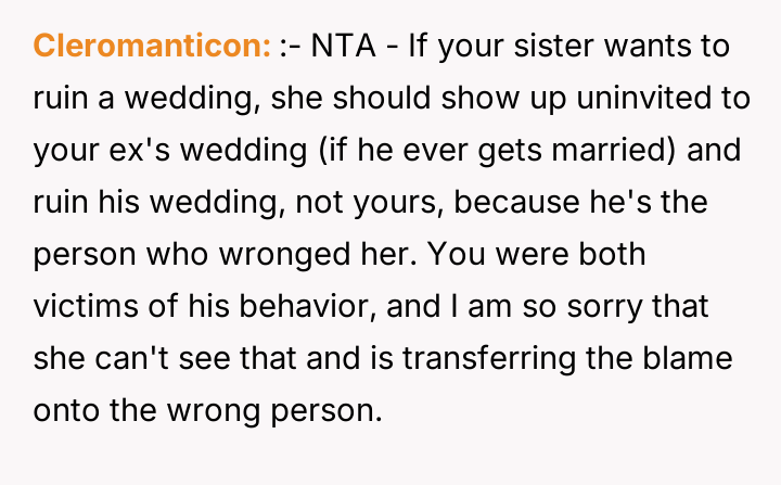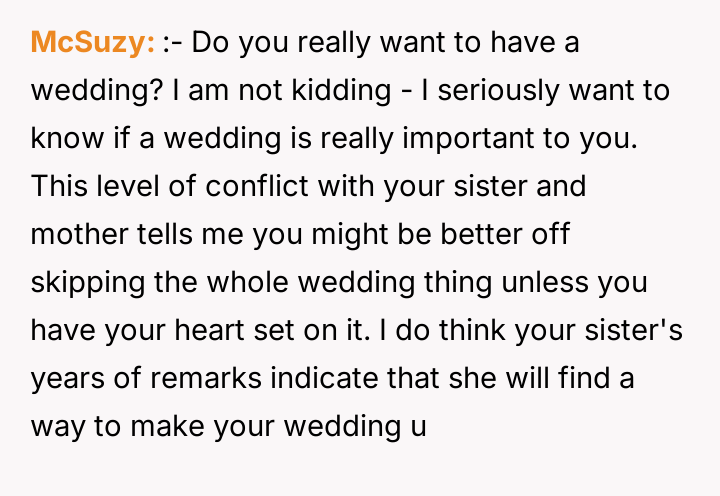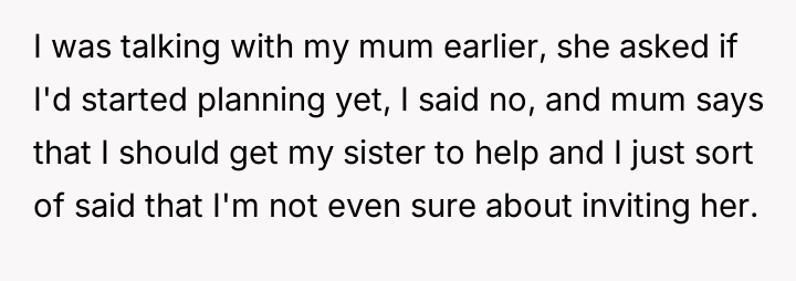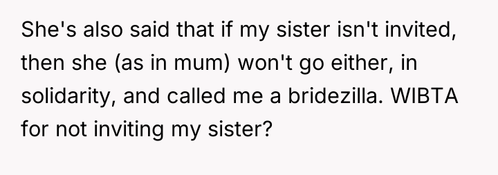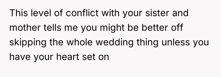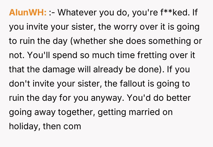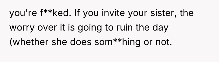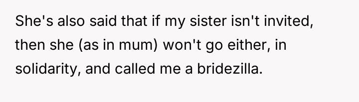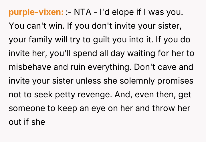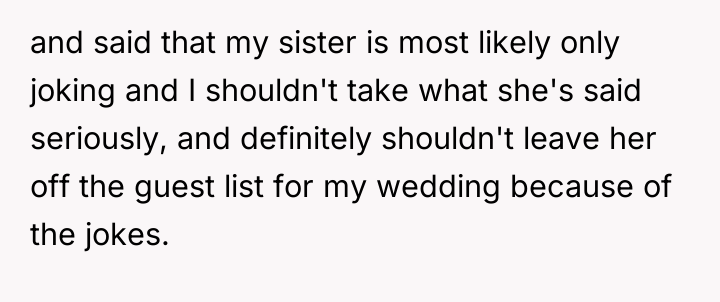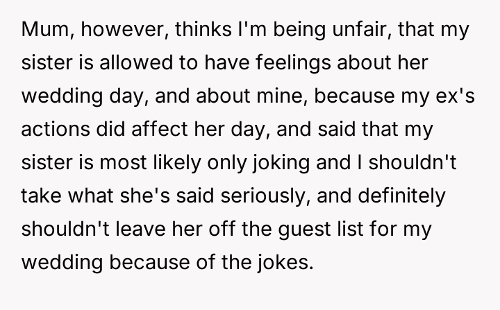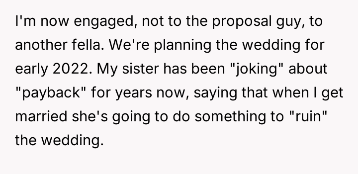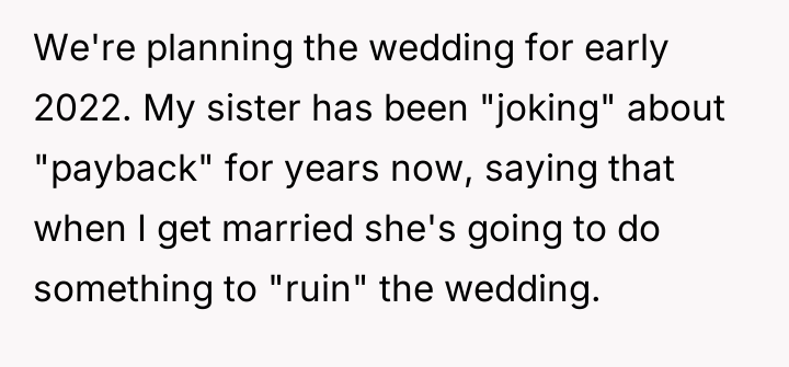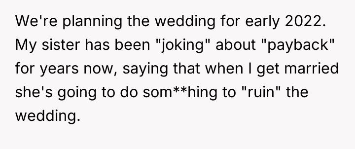'WIBTA for not inviting my sister to my wedding as she's "joked" about "ruining" it after I ruined hers?'
