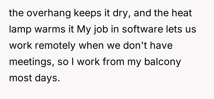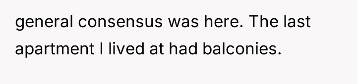 After reading through the Reddit comments, it's clear that many people resonated with the author's dream of having a personal outdoor space in a bustling city. Commenters praised the thoughtful setup of the balcony, admiring how the author transformed a small area into a cozy oasis with seating, lighting, and even a mini bar. Many shared their own experiences of making the most out of limited living space, emphasizing the importance of having a sanctuary to relax and recharge.