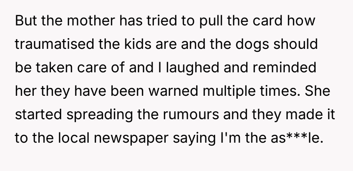 AITA for laughing at my neighbours face after she told me she will get my dogs removed?