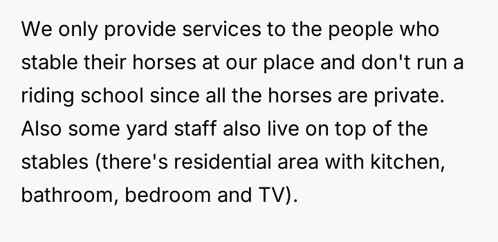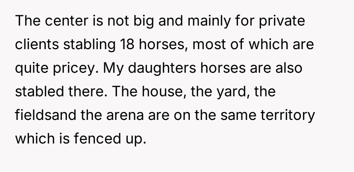 After reading through the Reddit comments, it’s clear that many readers sympathize with the original poster’s challenges balancing family life and managing a specialized equine center in a rural area. Commenters often highlighted the importance of clear communication and boundaries with clients to maintain a manageable workload, especially when running a private facility. Some even suggested finding additional support or adjusting schedules to prevent burnout, which seemed to resonate with the community’s collective wisdom.