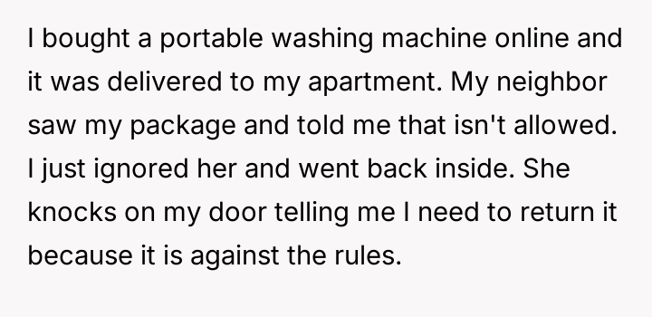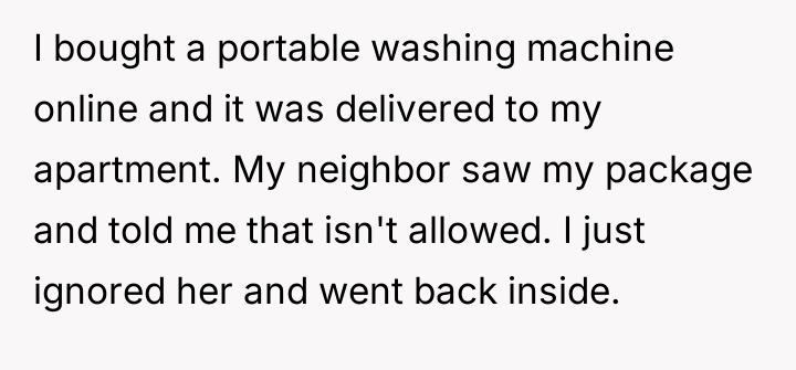 In the quiet confines of an apartment complex, a simple act of purchasing a portable washing machine spirals into a storm of confrontation and judgment. What began as a personal choice quickly became a battleground of rules, neighbors, and silent resentments, where the weight of community expectations bore down heavily on one individual’s right to convenience and comfort.