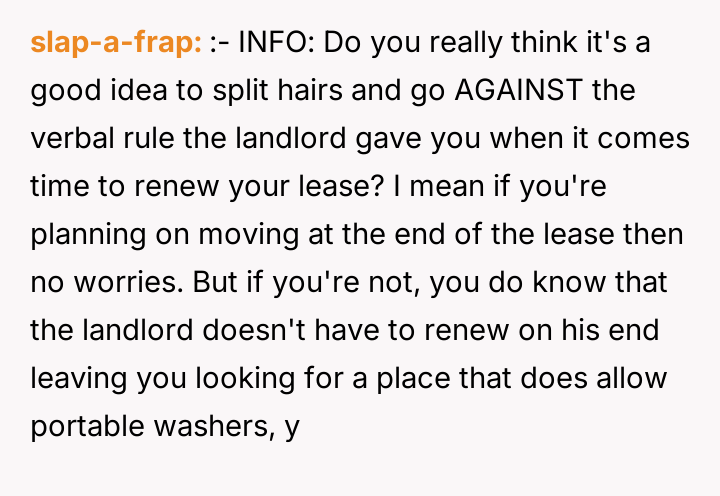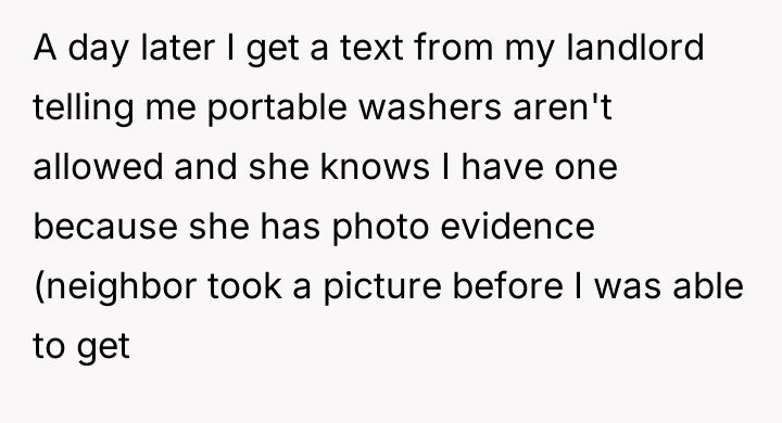 In my view, while the portable washing machine might offer personal convenience, it's crucial to adhere to apartment rules designed for the collective good. Ignoring these guidelines not only risks financial penalties but also damages neighborly trust. The best course of action would be for the poster to either return the machine or seek formal permission from the landlord, thereby maintaining harmony and avoiding unnecessary disputes. Ultimately, respecting shared living arrangements helps everyone coexist peacefully.