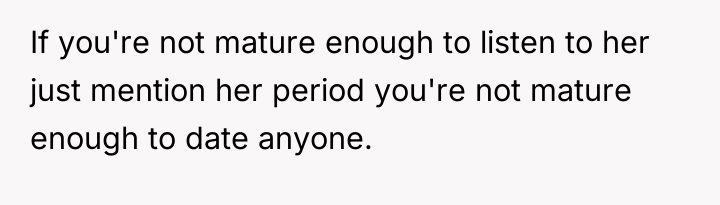 Reading through the Reddit comments, it's clear that many users felt the boyfriend's reaction was dismissive and insensitive. While some acknowledged that periods can be uncomfortable to discuss, the consensus was that supporting a partner through natural bodily functions is part of a caring relationship. The girlfriend’s feelings and openness were valid, and it was important for the boyfriend to recognize that learning about and respecting her experience would strengthen their bond.