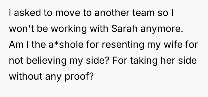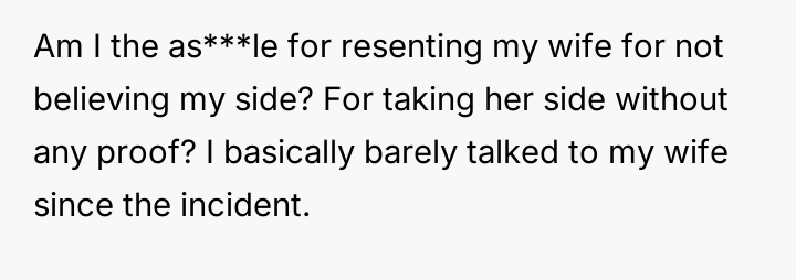 AITAH for resenting my wife for not believing my side of story