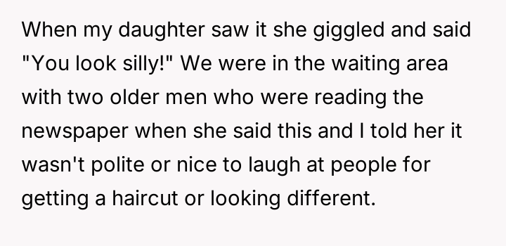 After reading through the Reddit comments, it’s clear that many people appreciated the sweet honesty and innocence of the little girl’s reaction. Commenters praised the mother for gently teaching empathy and kindness in a relatable moment, highlighting how children can be honest but also learn quickly about social grace. The boyfriend’s new haircut sparked light-hearted amusement, but ultimately, the story resonated because it captured a genuine family moment filled with love and learning.