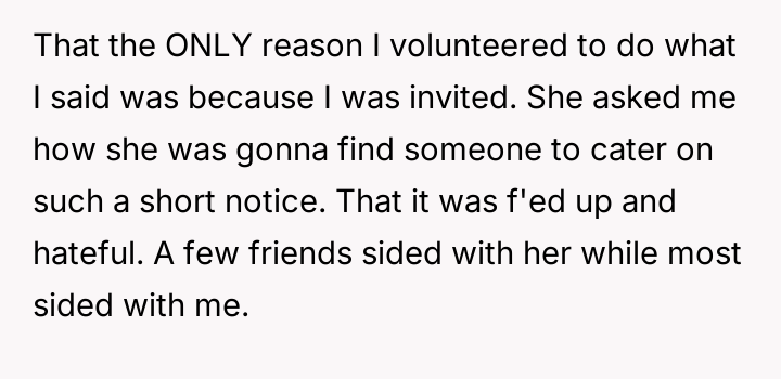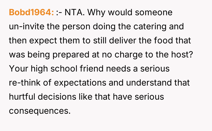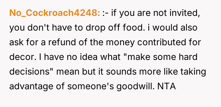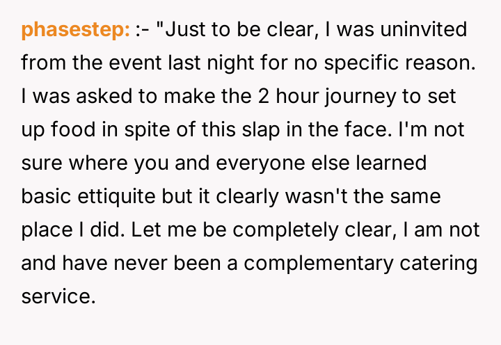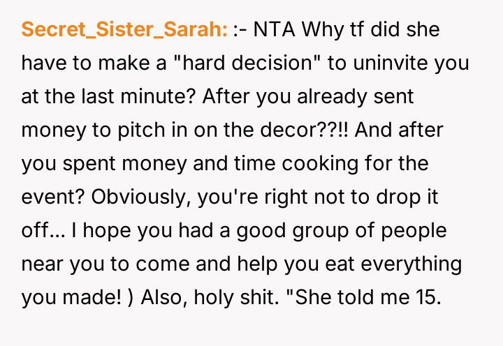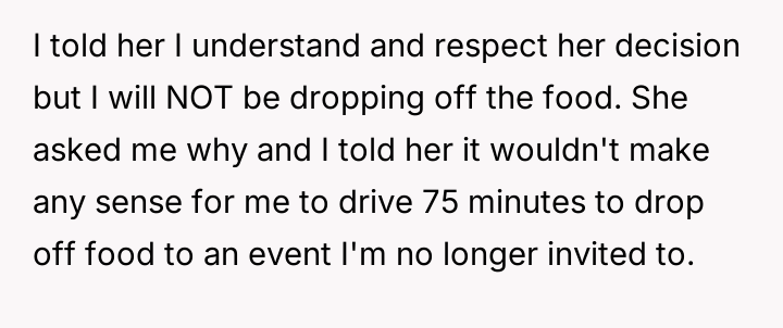 AITAH for not delivering the food I made to an event I got uninvited to?