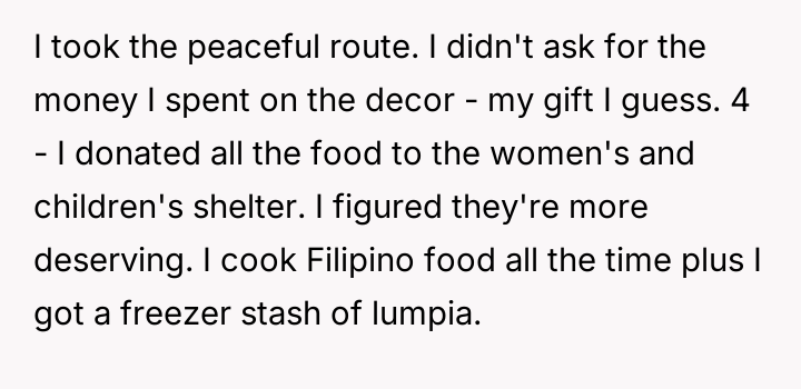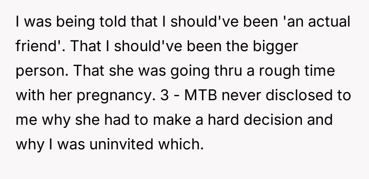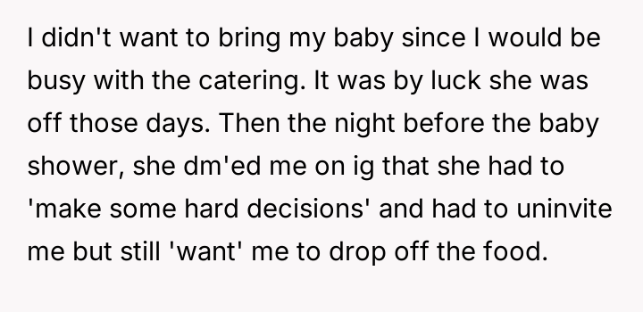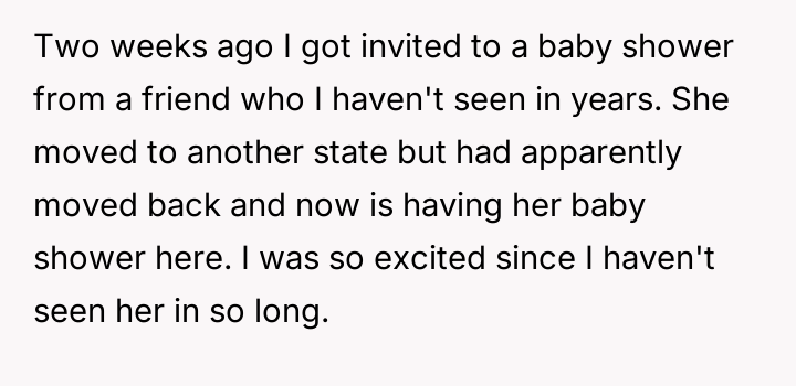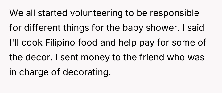 In my opinion, while the miscommunication was unfortunate, the willingness to contribute and reconnect with an old friend shines through. Events like baby showers are meant to celebrate and support, and sometimes things don’t go exactly as planned. What matters most is the intention and the kindness behind the actions, even if the logistics get a bit messy along the way.
