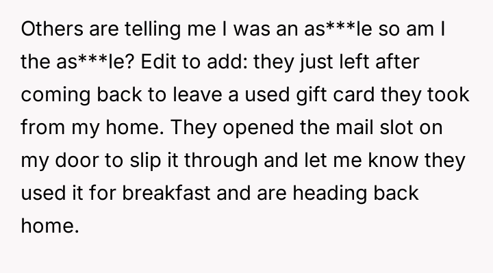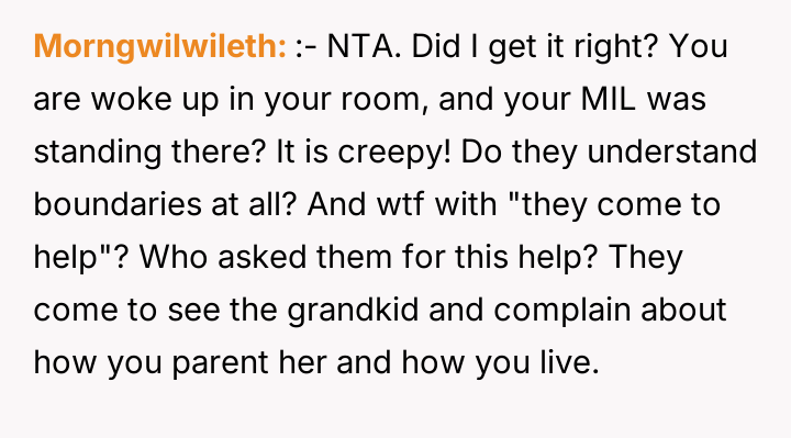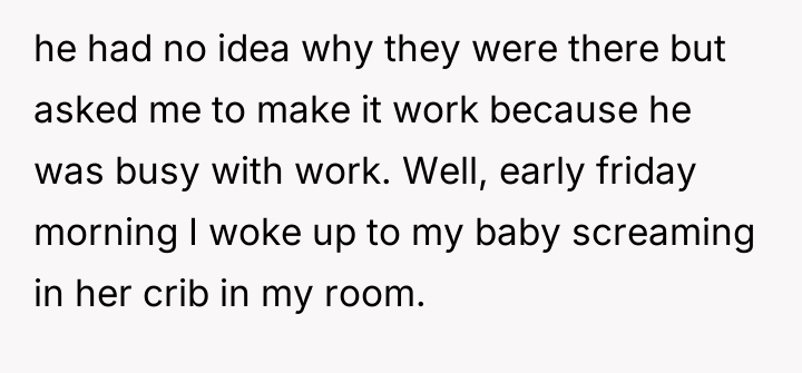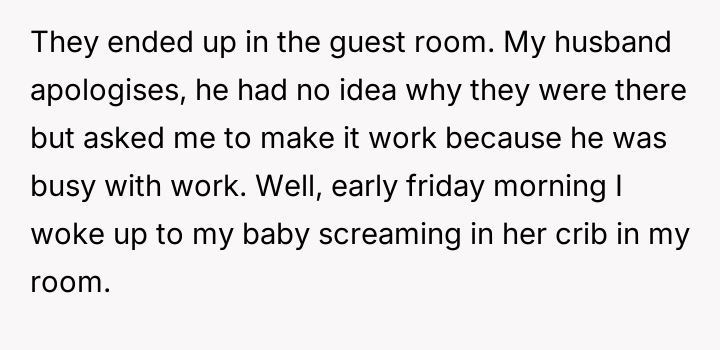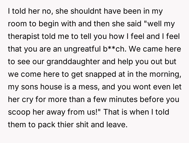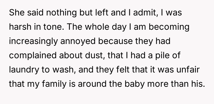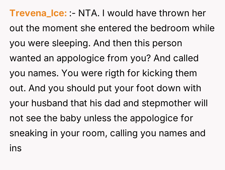 After reading through the Reddit comments, it's clear that many sympathize with the mother's frustration and concern over boundaries being crossed so soon after the baby's birth. Most commenters agree that the grandparents' unexpected arrival and handling of the baby without permission was disrespectful and stressful, especially given the existing family tensions. The husband's absence complicates the situation, but many feel he should have been more proactive in setting clear rules to protect his wife and child.