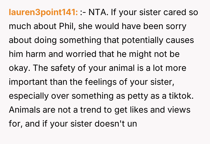 AITA for not allowing my sister near my bearded dragon after doing a Tik Tok trend with my pet?