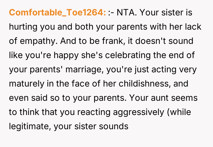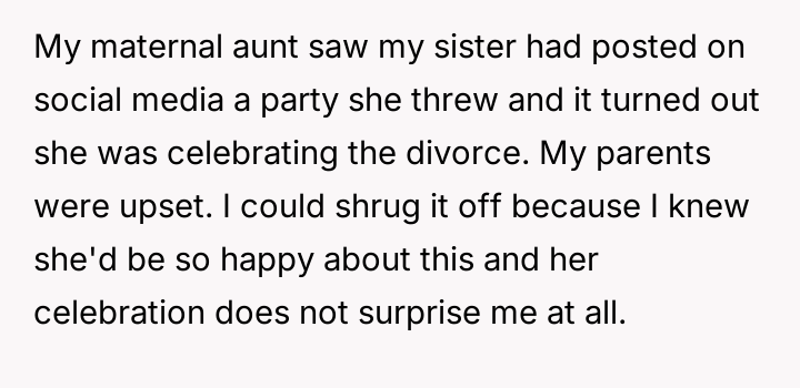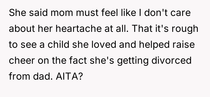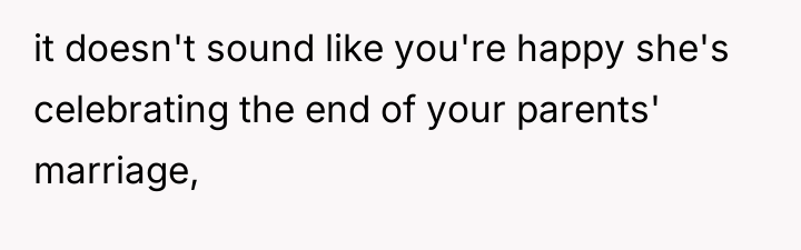 AITA for not making a bigger deal out of my half sister celebrating the end of my parents marriage?