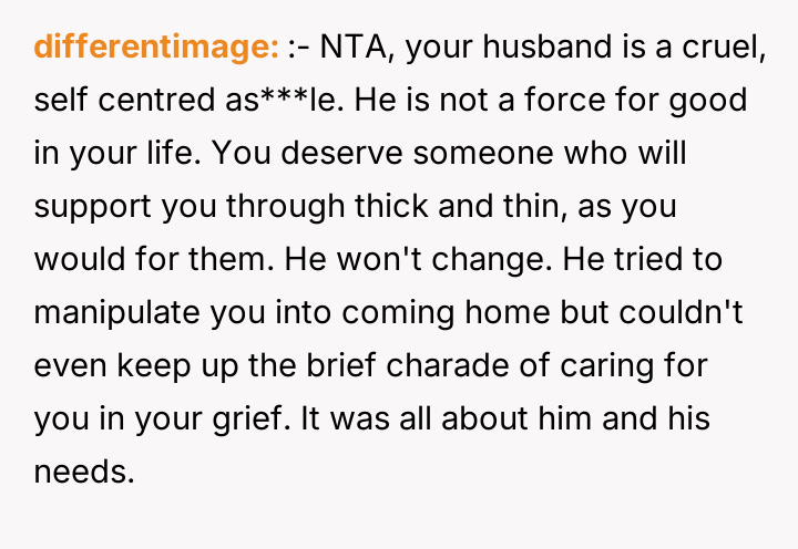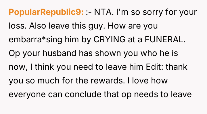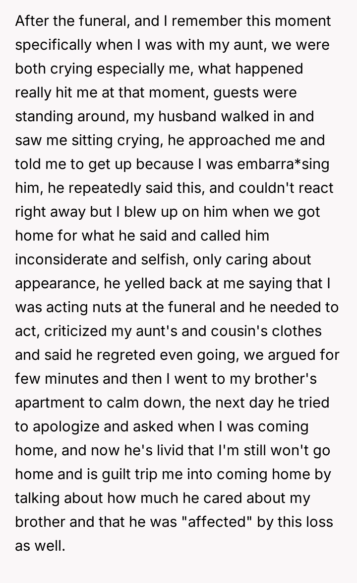Aita: For leaving home after my husband said I was embarra*sing him when I was crying?