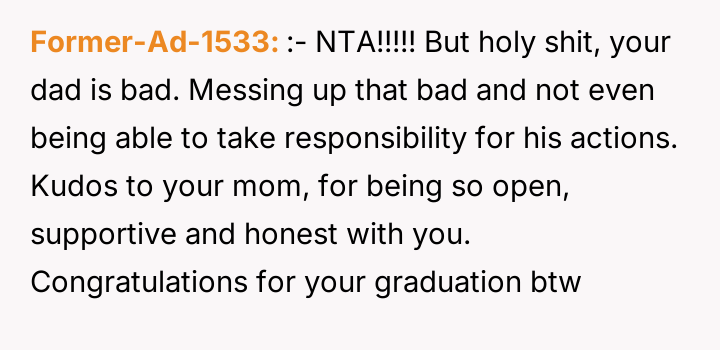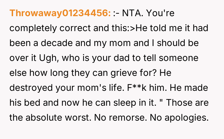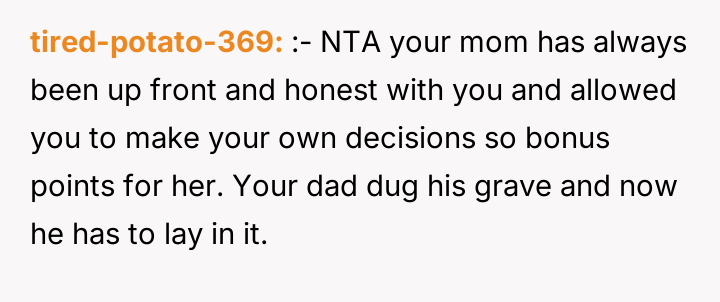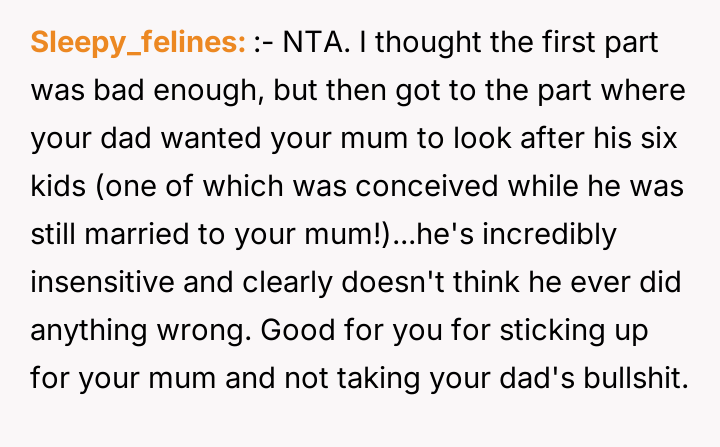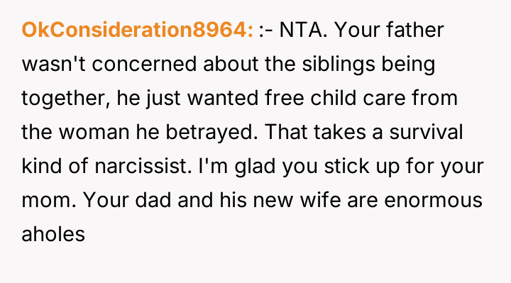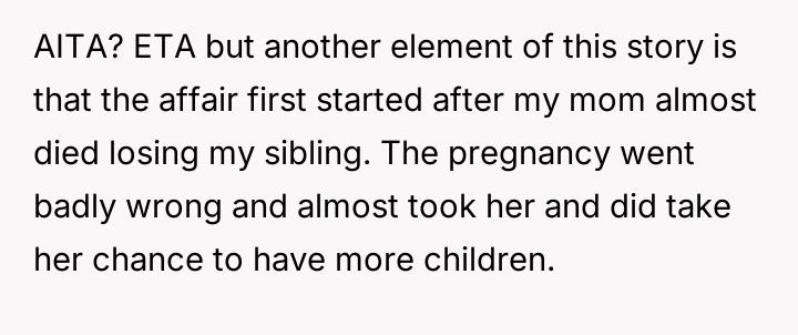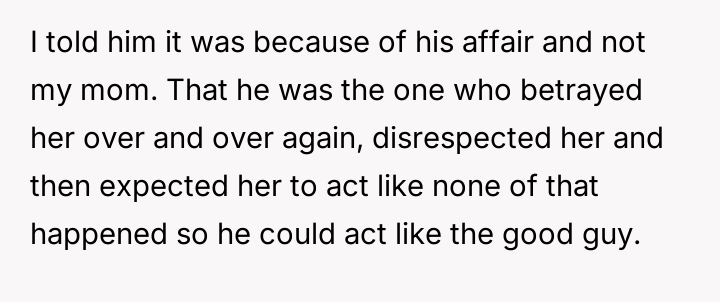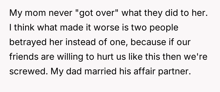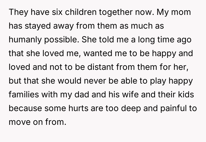 Reading through the Reddit comments, many expressed empathy for the original poster’s situation, highlighting the profound impact that betrayal can have on a family. Several commenters shared similar experiences or pointed out how the pain from such deep wounds can linger, making it difficult for people to fully heal or reconcile. Others acknowledged the strength it takes to maintain personal boundaries and prioritize one’s own emotional well-being, even when it means distancing oneself from complicated family dynamics.